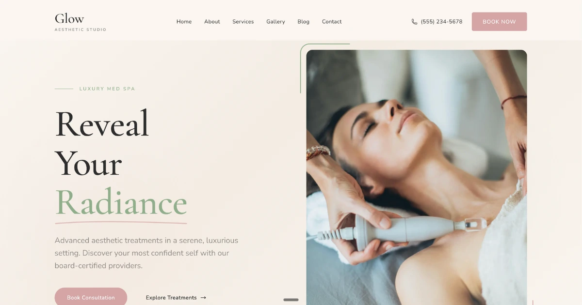 Elegant med spa website showcasing wellness services, treatment options, and appointment booking.