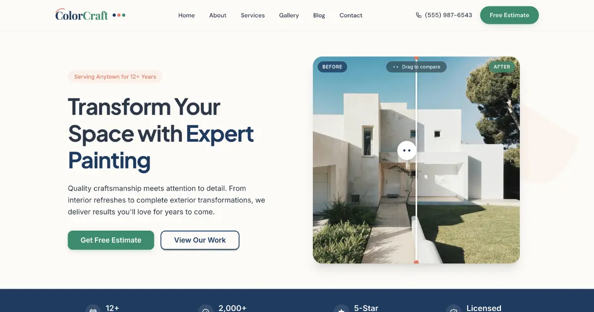 Professional painting company website with service showcases, project galleries, and quote request forms.
